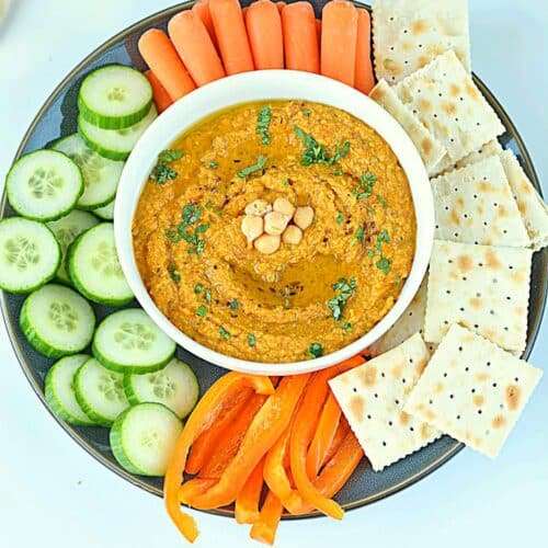 Положите вареный нут в чашу блендера и добавьте все остальные ингредиенты. Взбивайте продукты, пока они полностью не объединятся. Переложите массу в миску, дайте ей настояться полчаса в холодильнике, а затем подавайте на стол.