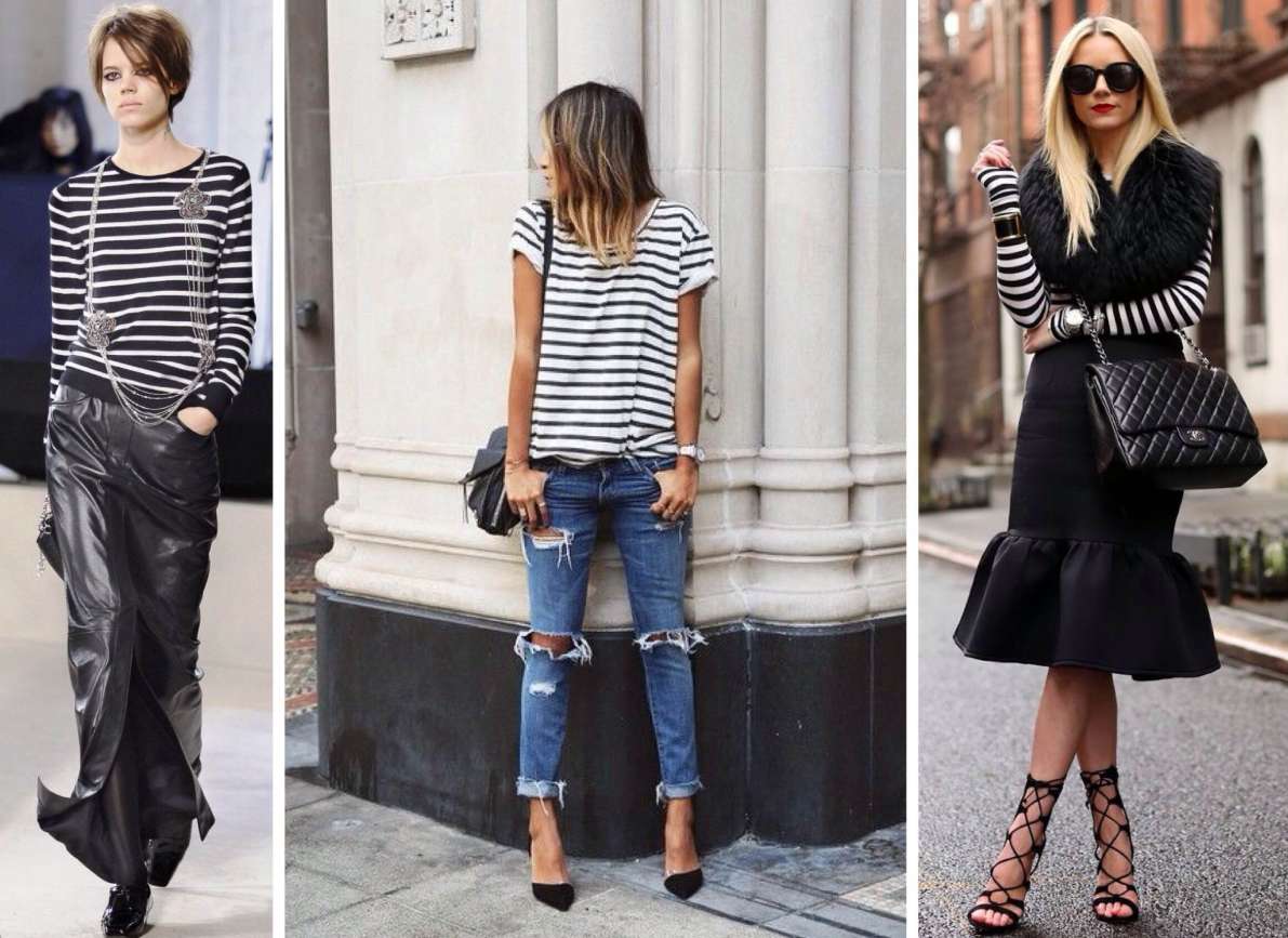 Для тех, кто любит образы с характером, стоит попробовать сочетание тельняшки с кожаной косухой. Это беспроигрышный вариант, который придает луку легкий рок-н-ролльный настрой. Черная куртка, зауженные брюки или мини-юбка, высокие сапоги или массивные ботинки — и вот уже тельняшка перестает быть частью морского образа, превращаясь в элемент бунтарского стиля.