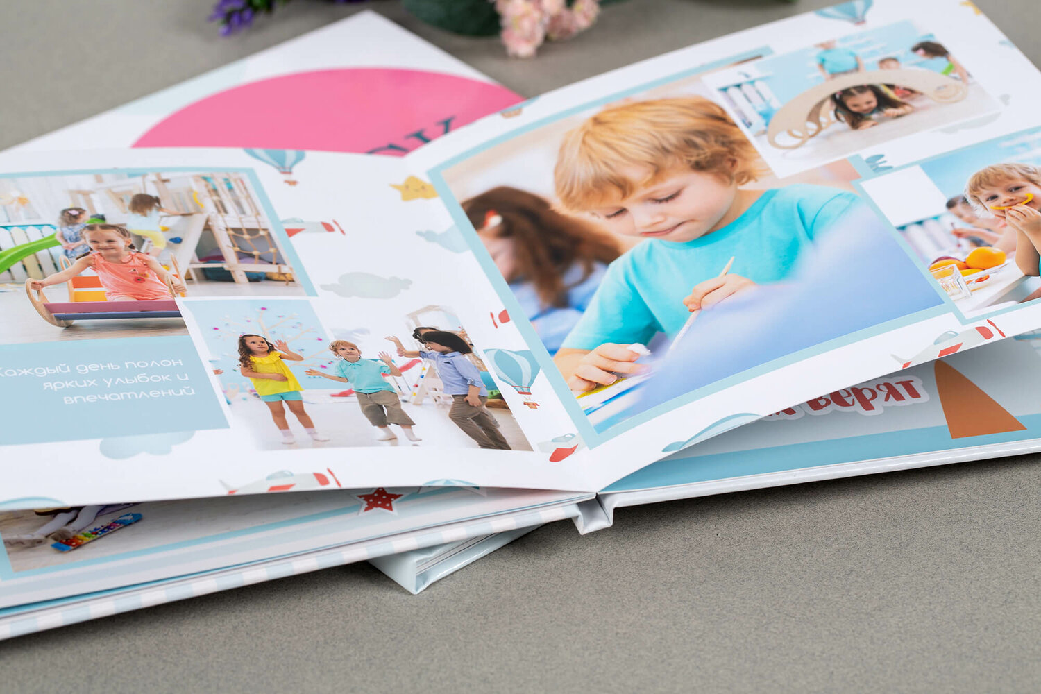 Наиболее часто заказывают фотокниги, посвященные выпускному, школьной жизни, свадьбам, профессиональной деятельности, фотокниги-презентации фирмы. Среди всего этого многообразия необходимо выделить фотокниги, которые посвящаются маленьким детям дошкольного возраста. Фотокнига детский сад будет отличным подарком вашему ребенку, особенно приятно будет ее просматривать, когда он подрастет. С ностальгией смотрятся эти кадры, когда человек уже достаточно взрослый. Ведь не зря говорят, что самая хорошая пора жизни – это наше детство и юность. Детская фотокнига очень насыщена, яркая жизнь в детском саду представлена в ней веселой, многообразной и интересной. В тексте можно вставить смешные фразы, которые ребенок говорил в эти годы своей жизни. Вариантов оформления и дизайна детской фотокниги достаточно много. Здесь можно найти и сборки по мотивам мультфильмов, и нечто более глубокое и интересное. В каком-либо конкурсе «фотокнига года» шансов победить больше именно у детской фотокниги, так как она будет самой позитивной, радостной и интересной. Распечатать фотокниги в типографии можно в любое удобное для Вас время, осуществить заказ можно посредством сети Интернет.