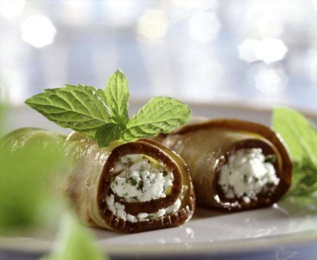 Рулетики из баклажанов с творогом и орехами