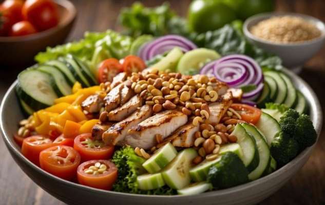 Салат с курицей и свежими овощами