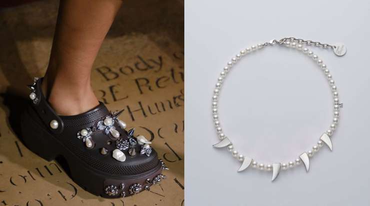 Модные дизайнеры сегодня любят экспериментировать с жемчугом, добавляя его в необычные аксессуары как элемент декора. Например, жемчужины, инкрустированные в бейсбольные кепки или даже кроксы, могут стать вашим фирменным и неожиданным акцентом. Вот три тренда с жемчугом, которые актуальны в этом году.